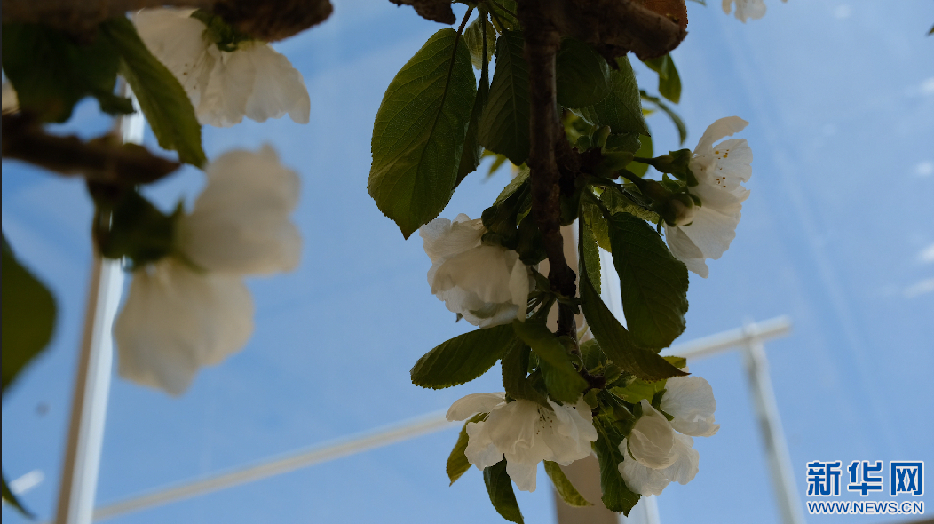 圖為吞彌現代農業(yè)產業(yè)園區(qū)大棚里盛開的車厘子花。新華網發(fā) 貢桑央吉(實習生)攝