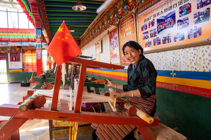 村民在織卡墊。上海援藏聯絡組供圖