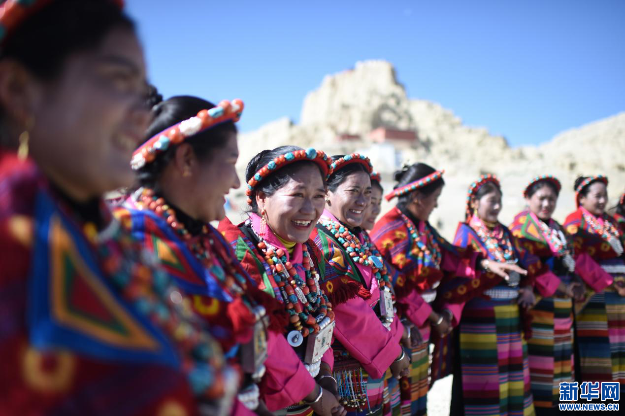 圖為當地群眾在古格王朝遺址腳下準備表演宣舞(4月23日攝)。新華網 旦增努布攝