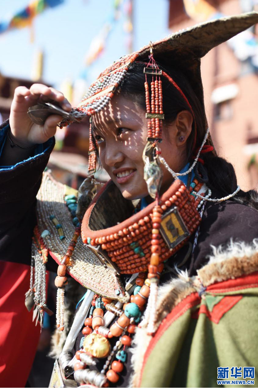 4月21日拍攝的身著普蘭服飾的普蘭縣科迦村村民。新華網 旦增努布攝