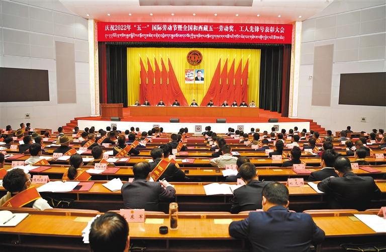 上午9點30分,大會在雄壯的國歌聲中拉開帷幕。洛桑江村主持會議,嚴金海、莊嚴分別宣讀了關于表彰2022年全國、自治區五一勞動獎和工人先鋒號的決定,陳永奇、汪海洲、達娃次仁出席會議。與會領導向受表彰代表頒發獎狀和獎章,受表彰代表作交流發言。