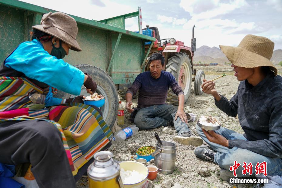 勞動節期間,海拔3800多米的日喀則田間一派繁忙景象。 江飛波 攝
