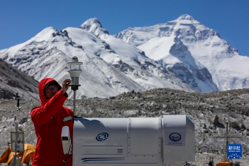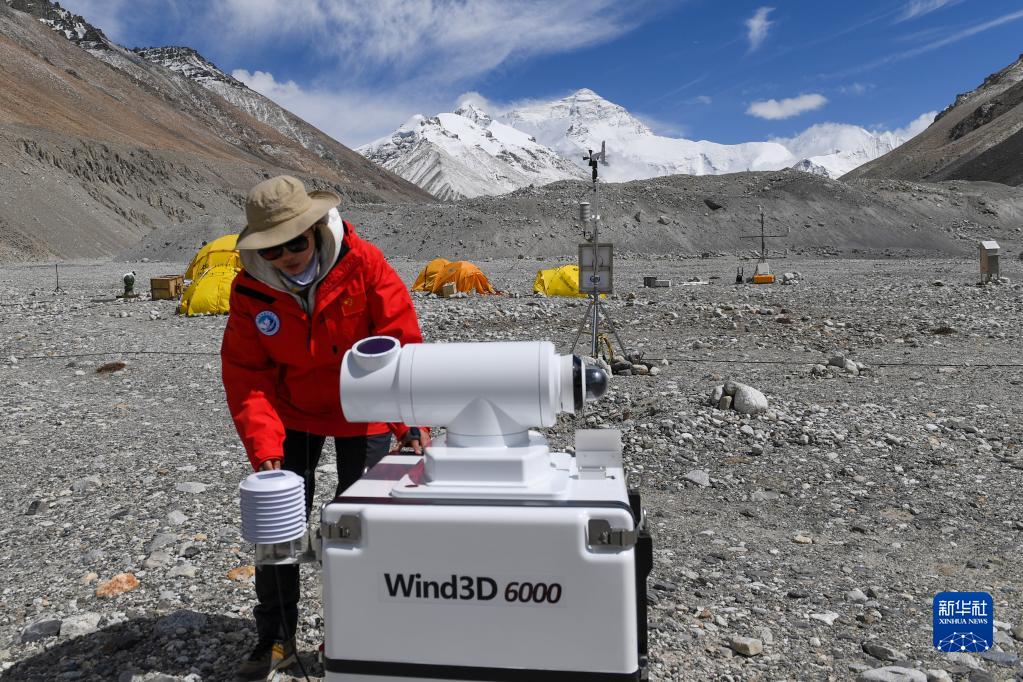 5月2日,在珠峰登山大本營,科研人員檢查測風雷達。新華社記者 姜帆 攝
