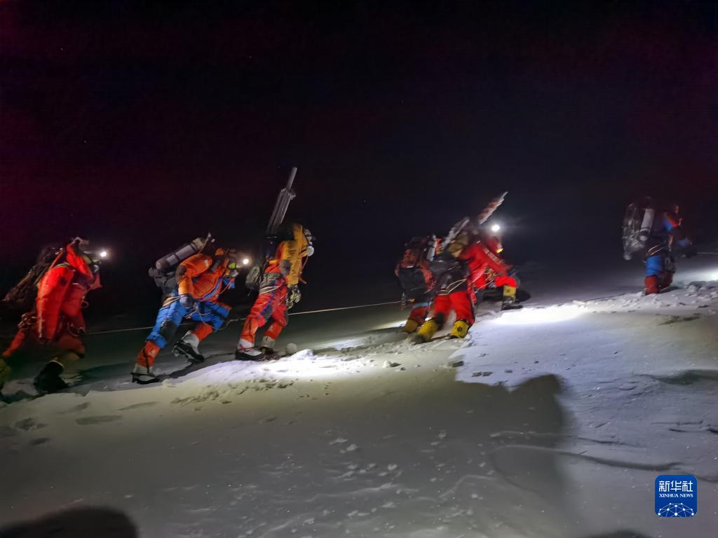 5月4日凌晨,珠峰科考隊員從突擊營地出發,向珠穆朗瑪峰峰頂發起沖刺。新華社特約記者 索朗多吉 攝