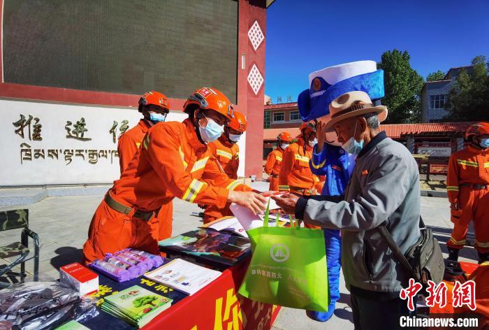 此次活動,日喀則市森林消防大隊采取定點宣傳和流動宣傳相結(jié)合方式,共出動3輛消防車和20余名消防宣講員到學(xué)校、社區(qū)、商場等地開展宣傳活動。