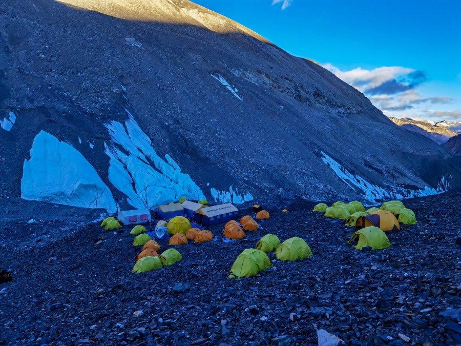 這是冰川與污染物小組位于海拔5800米的科考營地(5月6日攝,手機照片)。新華社發(fā)(受訪者供圖)