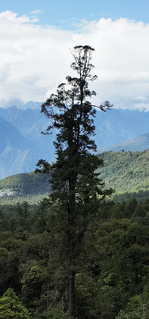墨脫位于西藏東南部,地處雅魯藏布江下游,擁有豐富的生物多樣性和廣闊的原始森林。不丹松主要分布在海拔1400米至2500米的山地雨林與亞熱帶氣候區,要測量樹高難度很大。