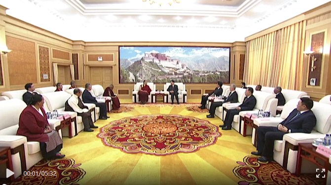 近日,西藏自治區黨委書記王君正在拉薩會見班禪額爾德尼·確吉杰布。 自治區領導洛桑江村、莊嚴、陳永奇、嘎瑪澤登、達娃次仁、甲熱·洛桑旦增、珠康·土登克珠、薩龍·平拉、索朗仁增一同會見。