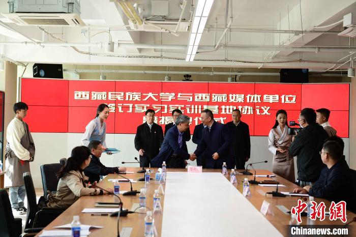 西藏民族大學黨委常委、副校長,中國傳媒大學黨委常委、副校長張樹庭在簽約儀式上說,這次在西藏自治區黨委宣傳部的指導下,西藏民族大學與西藏媒體單位共建實習實訓基地,將進一步助力學校培養符合西藏長治久安和高質量發展需要的現代傳媒人才。西藏民族大學的新聞傳播學子通過到實習基地實踐鍛煉,參與新聞單位一線采編工作,可以在實踐中把握西藏新聞工作的特殊規律;通過常年奮戰在西藏新聞戰線的優秀記者編輯的傳幫帶,將不斷提升專業實操技能;通過開展新聞傳播專業實踐與社會調研,將新聞理論與工作實踐相結合,有助于拓寬專業知識面。