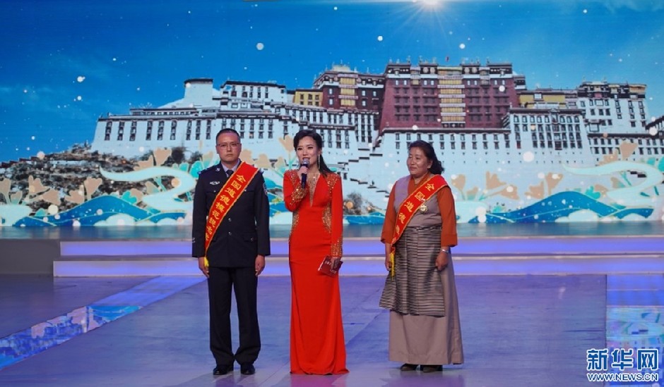 圖為晚會現(xiàn)場獲獎?wù)吆嫌埃?月31日攝)。新華網(wǎng)發(fā) 貢桑央吉(實習(xí)生)攝.