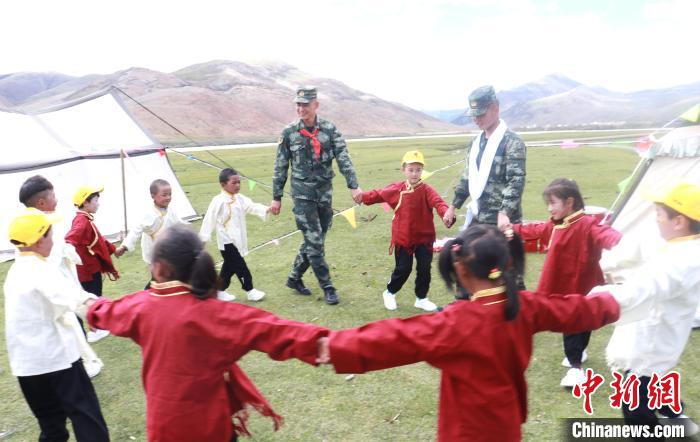 在西藏阿里地區噶爾縣昆莎鄉那木如村幼兒園、普蘭縣小學、霍爾鄉小學和日喀則市仲巴縣小學、吉嶺鄉小學,官兵為貧困學生捐贈書包、鋼筆、筆記本等學習用品,同學生們一道玩趣味互動游戲,指導員張龍還為同學們上了一堂精彩的國防教育課。