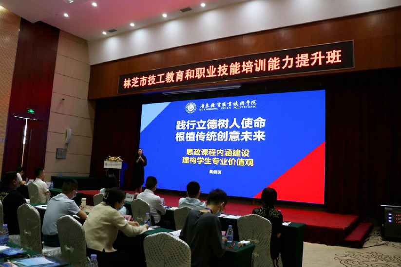 圖為廣東機電職業技術學院鄭偉光校長為林芝市技工教育和職業技能培訓能力提升班學員授課。