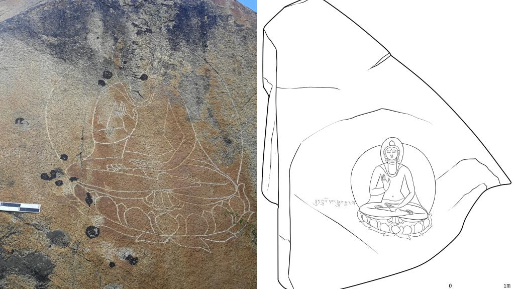自治區文物保護研究所研究員夏格旺堆說,這一石刻造像群造像技法皆為陰線刻,雕工技術嫻熟,線條流暢。此外,部分石刻群區域不僅造像分布集中,而且在其周圍可見地面石砌建筑遺址,推測應當與早期佛教修行場相關。石刻群中,部分造型還反映出較為明顯的元代特征、吐蕃晚期或吐蕃分裂不久后的吐蕃遺風。