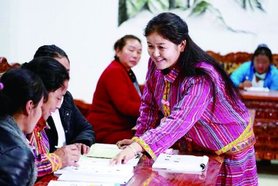 西藏墨脫縣墨脫鎮亞東村,上過中學的嘎迪利用晚上時間輔導村民學習漢字講普通話。季春紅攝/光明圖片