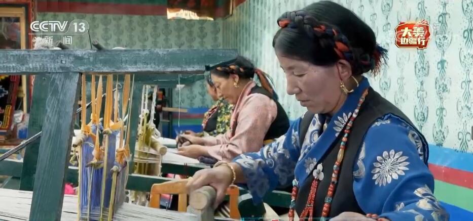 崗巴縣崗姆沖農民專業合作社負責人 央拉姆:我們這里有卡墊、靠背、氆氌、邦典。這個叫邦典,我們就這樣戴的。