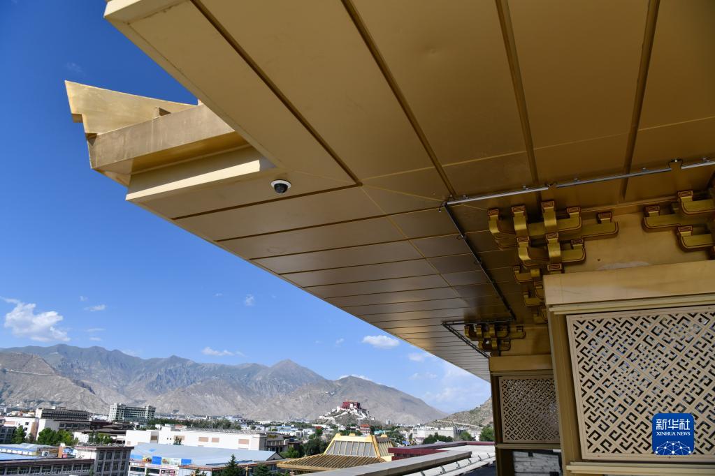 西藏博物館藏式金頂使用了輕型的鋼結構(7月6日攝)。新華社記者 晉美多吉 攝