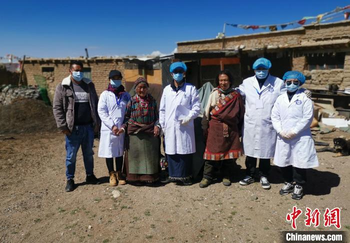 圖為醫護人員與基層牧民合影。普蘭縣人民醫院供圖