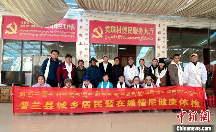 圖為醫護人員與基層村干部合影。普蘭縣人民醫院供圖