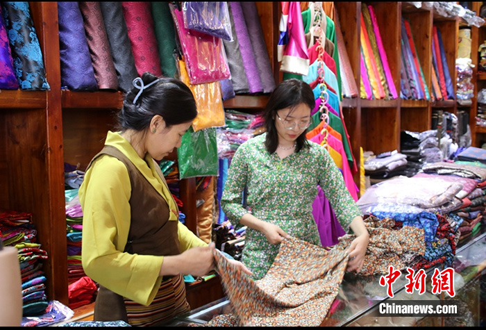 圖為7月20日,旦增卓瑪(右)和媽媽在位于八廓街的自家藏裝店內。 中新社發 扎西旦增 攝