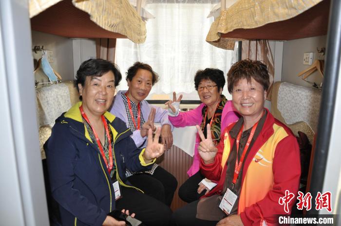 圖為乘坐首趟暑期進藏旅游專列的旅客合影。霍金偉 攝