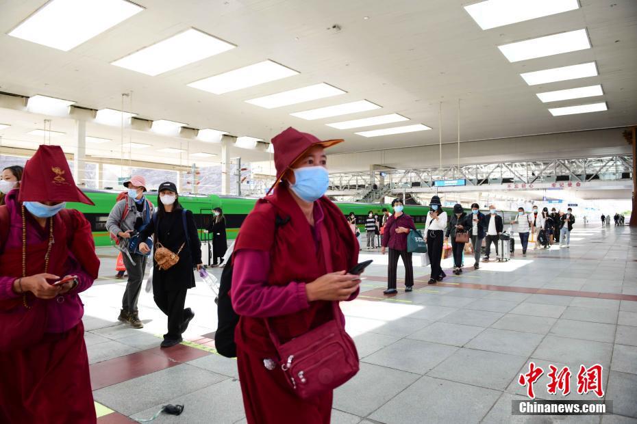 8月11日,旅客在鐵路拉薩站依次有序出站。據悉,自本次疫情發生以來拉薩火車站日均離藏運送旅客數量約6000人次,貢嘎機場累計出港旅客約2萬人次。 中新社記者 貢嘎來松 攝