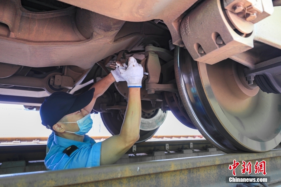 8月17日,北京車輛段北京西庫檢車間內,檢修人員對時速160公里動力集中型復興號動車組(俗稱“綠巨人”)的走行部進行檢修。這里是京津冀地區唯一的“綠巨人”檢修維修基地,肩負著18列共計261節車輛的檢修任務。隨著暑運逐漸迎來返校返程高峰,檢修人員也在加班加點為列車做好體檢工作,確保運行安全。 中新社記者 賈天勇 攝