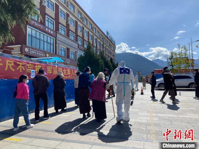 “阿媽,您先打開微信,在微信的小程序中尋找藏易通,打開頁面就可以看到了。”在林芝市區的核酸檢測點上,林芝邊境管理支隊機關民警曹婷正在耐心地為藏族老阿媽講解“藏易通”打開步驟。