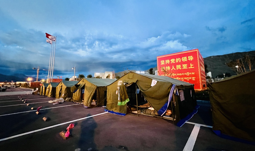 據介紹,為了盡快解決滯留旅客住宿問題,山南市貢嘎縣有關部門與機場協調劃出停車場南側區域,8月20日晚連夜奮戰搭建帳篷,并安排了四名志愿者駐點為旅客服務。“20日晚間,我們搭建了8個帳篷,今天又增加了4個帳篷,目前共有12個帳篷。”鄒云說。