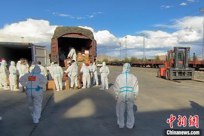上海援藏防疫物資抵達日喀則。 國鐵青藏集團有限公司拉薩車務段 供圖