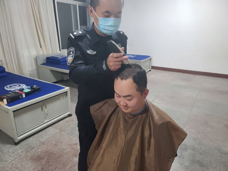 在隔離酒店執(zhí)勤的副所長王士博,在完成工作后請同事幫忙給自己剃了個光頭,“當前疫情防控形勢嚴峻,天氣逐漸變暖,每天穿著防護服工作,一身都是汗。”王士博說,剃掉頭發(fā)后更加涼快,在節(jié)省時間的同時也能避免頭發(fā)沾染病毒,更加安全。