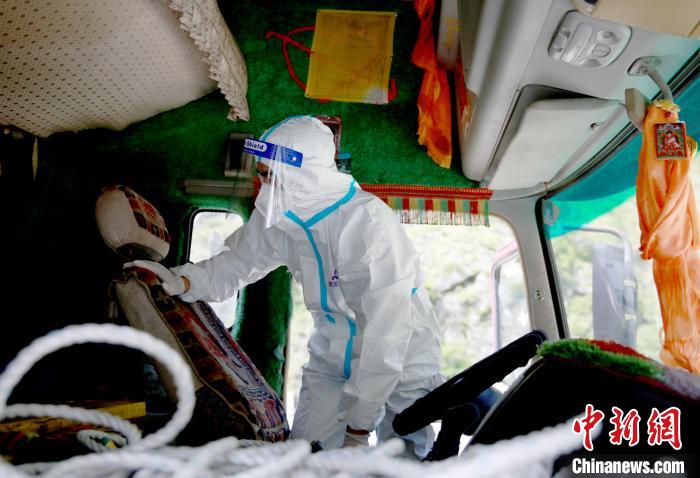 移民管理警察梅凡檢查進入吉隆口岸限定區域卡口車輛。 肖富貴 攝