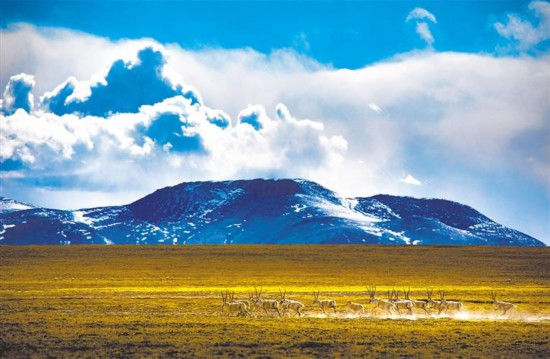 有效保護生物多樣性。圖為羌塘國家級自然保護區(qū)的藏羚羊。