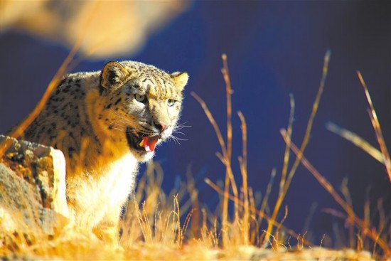 國家一級重點保護野生動物雪豹種群不斷壯大。圖為2022年3月,雪豹出現(xiàn)在西藏自治區(qū)拉薩市堆龍德慶區(qū)乃朗寺后山。