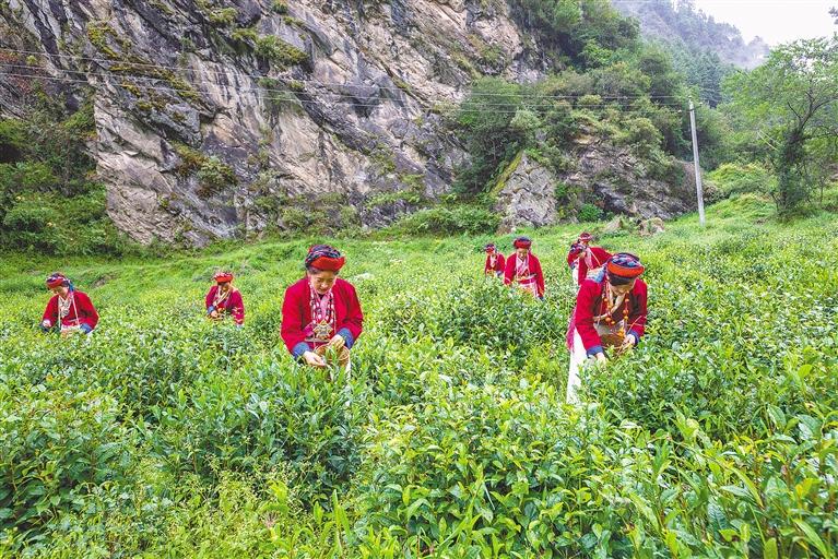 圖為加快建設邊境沿線發展帶,邊境一線各族群眾生活有保障、致富有渠道、守邊有動力、發展有支撐。圖為西藏自治區錯那縣茶葉專業合作社農牧民采摘新茶。