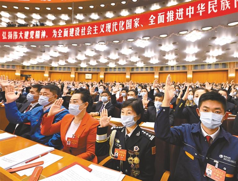圖為10月22日,中國共產黨第二十次全國代表大會在北京人民大會堂勝利閉幕。這是代表舉手表決。新華社記者 申宏 攝