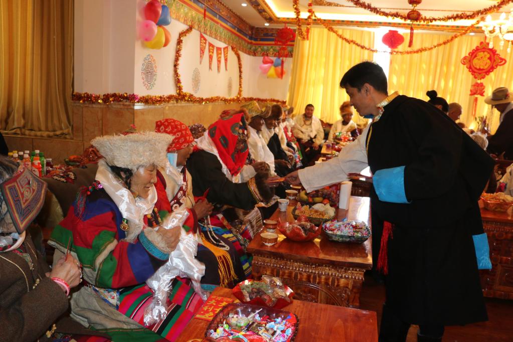 阿里地區特困人員集中供養服務中心的老人們在歡度藏歷新年。(2022年3月2日攝,新華社發)