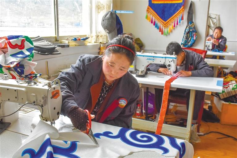 圖為“雙創”孵化基地的格拉夏手工業有限責任公司員工在制作帳篷。劉楓 攝