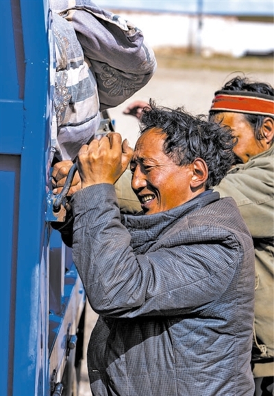 那曲市安多縣幫愛鄉群眾將家具裝車。