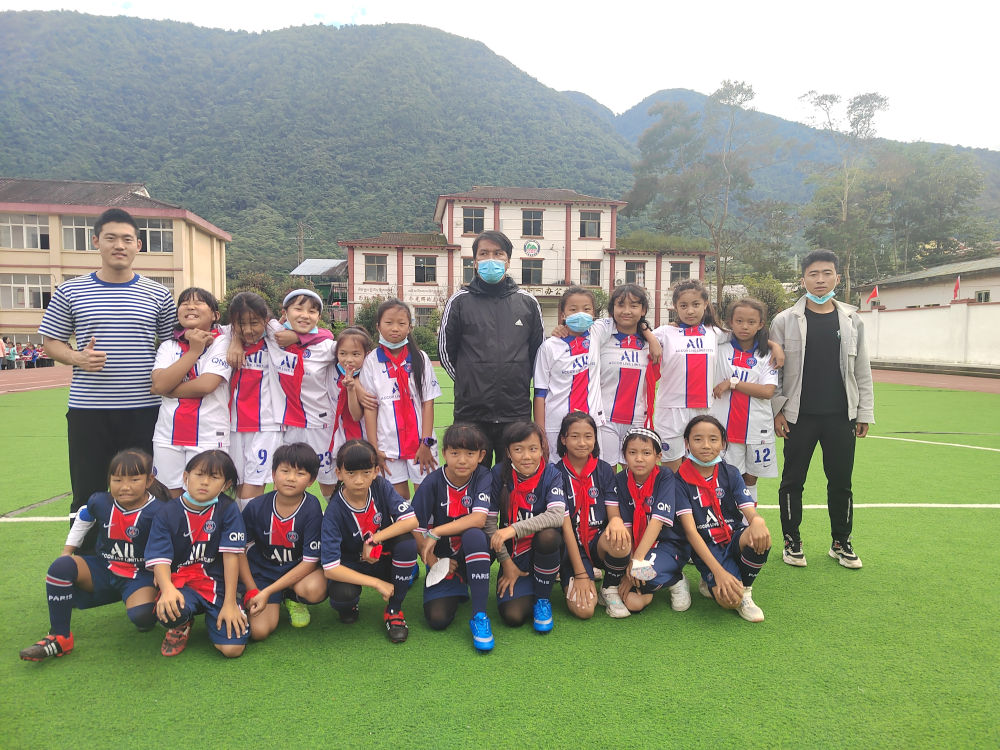 西藏墨脫縣完全小學陽光女子足球隊在一次比賽后合影留念(10月28日攝)。新華社發(孫思洋 攝)