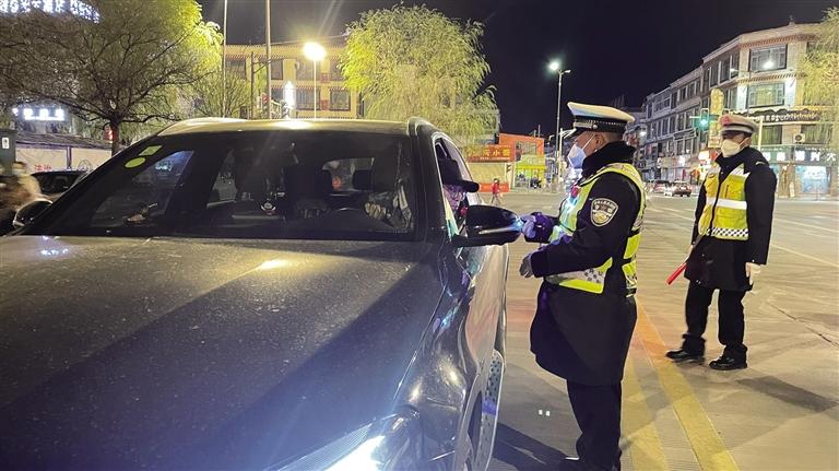 拉薩冬日的夜晚寒風(fēng)凜冽。夜色中,一輛輛汽車有序通行,街道又恢復(fù)了往日的熱鬧。當(dāng)天晚上9時許,記者跟隨拉薩市公安局交警支隊執(zhí)法監(jiān)督大隊民警前往江蘇大道,城南大隊的民警已經(jīng)設(shè)置好路障、標(biāo)牌,正在對過往車輛逐一進行詳細排查。“您好,請出示駕照。”“您好,請吹氣。”在民警的指揮下,車輛有序通過檢查點。市民扎西多吉駕車經(jīng)過檢查點后告訴記者,在這么冷的天氣里,交警依然堅守在路面上,確實令人敬佩,應(yīng)該為他們點贊。“我會牢記‘開車不喝酒,喝酒不開車’,也會自覺遵守交通法律法規(guī),文明出行。”扎西多吉說。