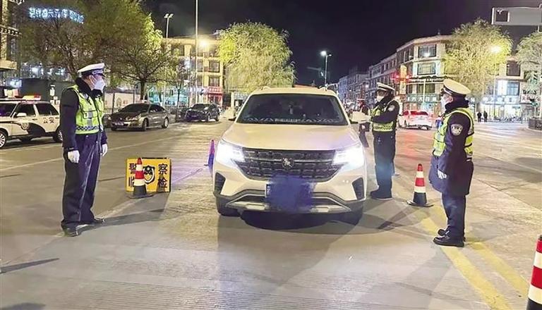 拉薩交警開展夜查酒駕統一行動。圖由拉薩交警提供