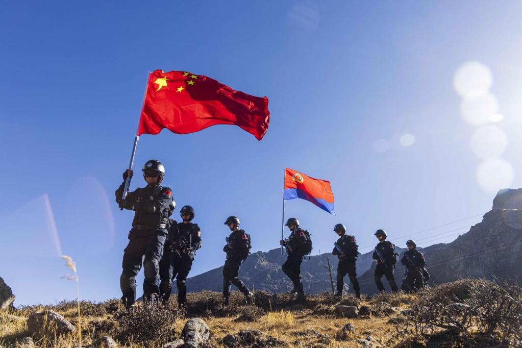 巡邏民警江琦說:“從邊防武警到移民管理警察,我在這片熱土上堅守了10年。作為一名光榮的西藏移民管理警察,我們與飛雪為伴、與風沙為友,但我們沒有怨言,沒有后悔,因為雙腳所踏,皆是使命擔當。”