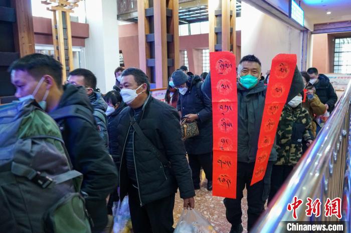 在候車廳,旦增旺久一家獲贈了藏語春聯,他介紹,自己是拉薩堆龍德慶區人,此次是乘火車前往上海觀光旅游。“每年冬天我們都會去其他省區旅游,云南、四川,還有江西這些我們都去過了,今年先去上海,再去廣東,計劃趕在藏歷新年前回到拉薩過年。”