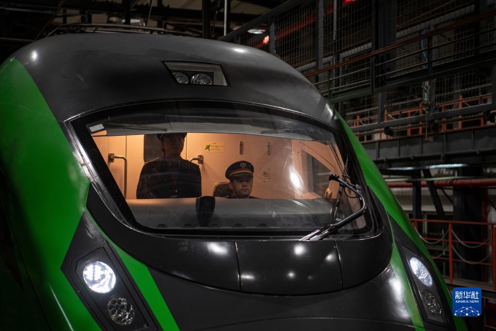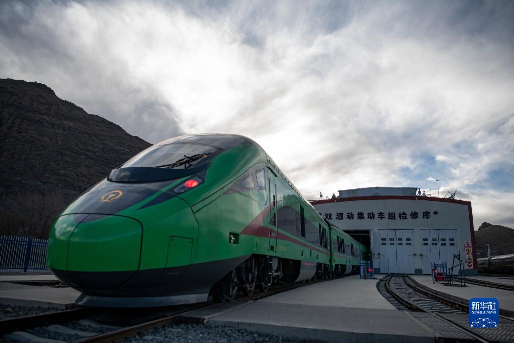 在拉薩機(jī)輛整備中心,動(dòng)車(chē)組在檢修庫(kù)進(jìn)行整備作業(yè)(1月10日攝)。新華社記者 孫非 攝