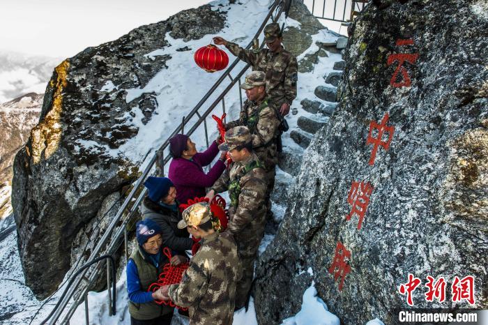 資料圖為三位藏族阿媽新年上山慰問“云中哨所”的官兵。 西藏軍區某邊防團供圖