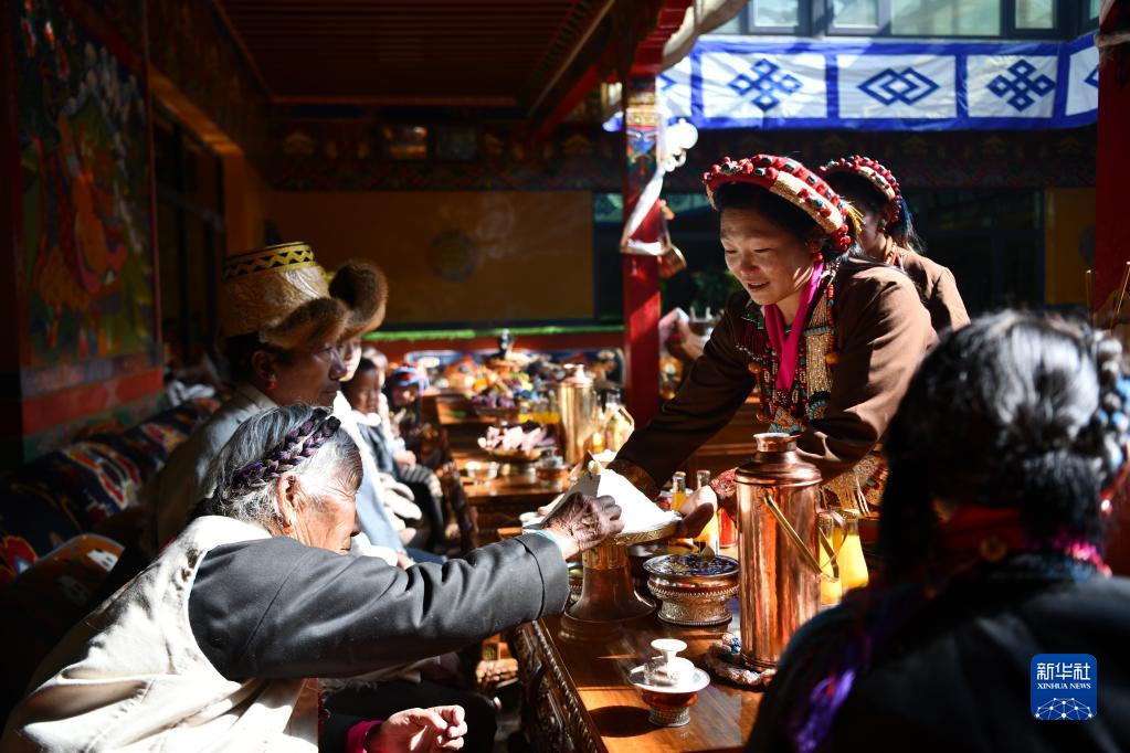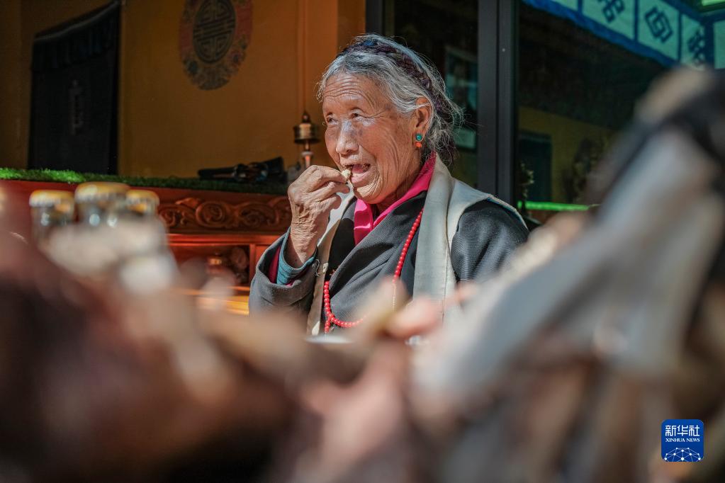 “小時候過年也有羊頭、切瑪可以吃。”次旦老人說,“但和今天不同的是,即便是一年中最豐盛的一頓飯,我們也只能吃兩口嘗個味道,沒辦法敞開肚子吃飽。”