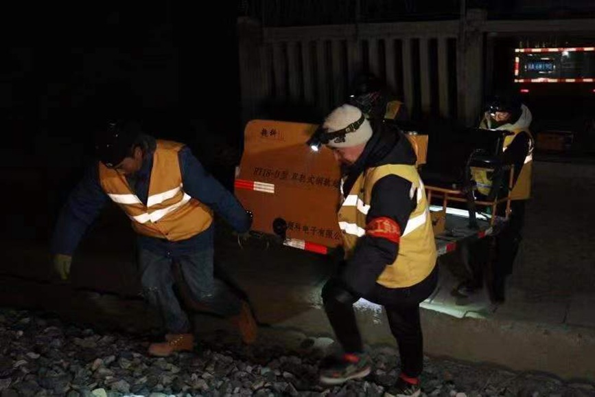 “大家帶好工具材料,準備出發。”22時整,隨著作業負責人探傷工區工長羅布一聲令下,呼嘯的寒風中,黃色的“迷你敞篷車”緩緩啟動,載著4名職工,開始了當晚對拉林鐵路20多公里線路的探傷檢查任務。