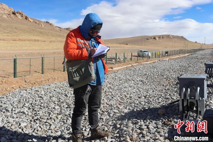 “今天還算暖和,風不大,平日里檢修設備,大風吹得眼睛睜不開,鼻涕也擦不完,凍得直哆嗦。”楊建青邊檢查邊說。因為長期在高海拔地區,他面色黝黑,臉上都是被紫外線灼傷的痕跡。