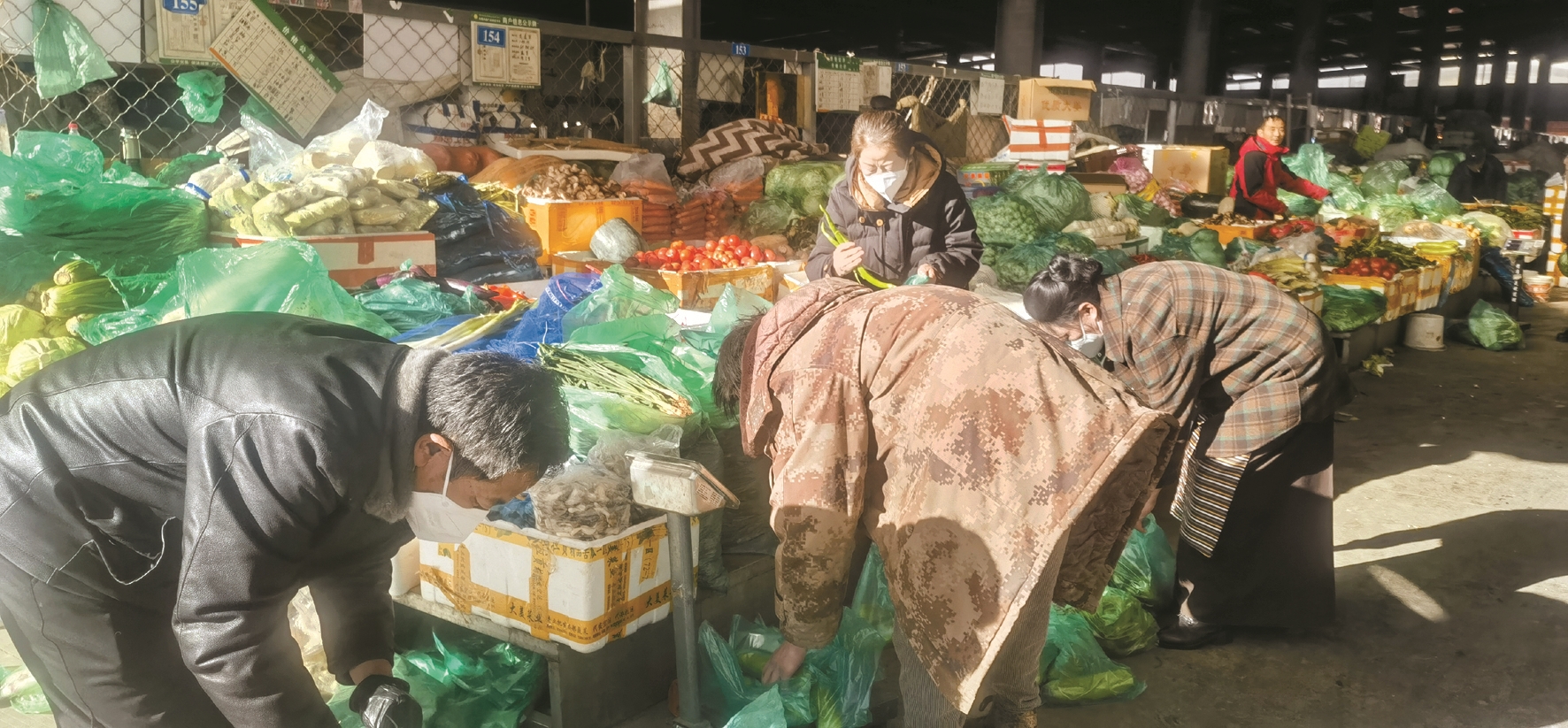 圖為在拉薩東嘎農副產品批發市場蔬菜銷售區,市民在購買蔬菜。拉薩融媒記者 楊 璐攝