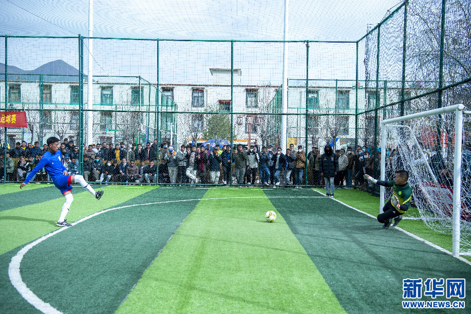 2月14日,巔炯邁瓦隊球員在點球大戰中射門。新華網 旦增努布 攝